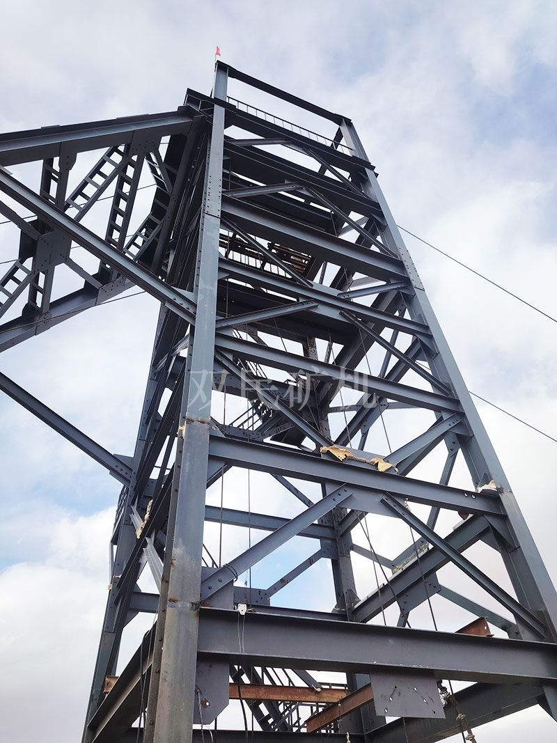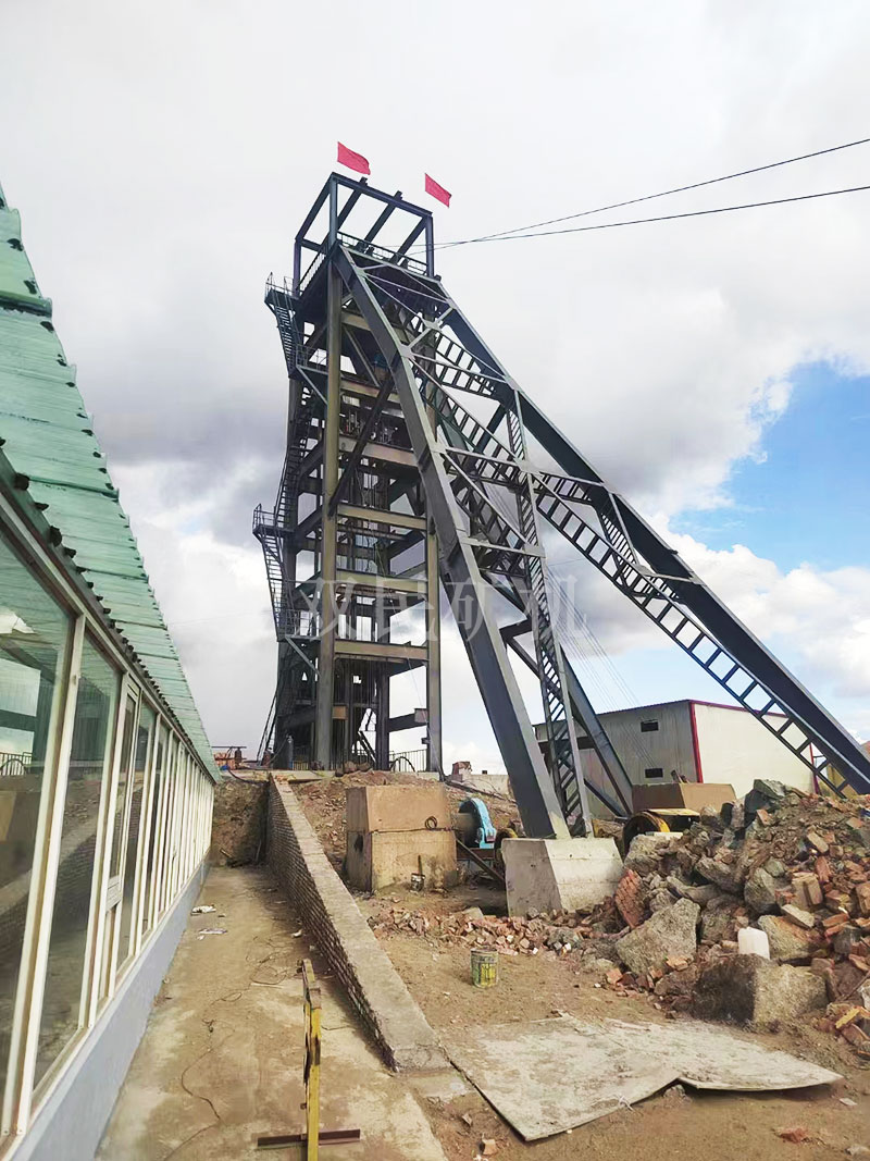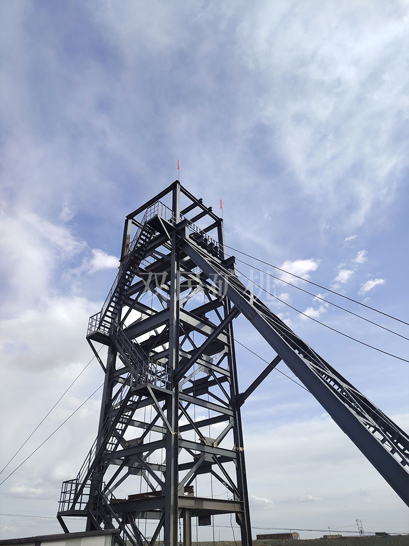 斜撐式永久井架主要特征和優(yōu)點: 單斜撐式井架是隨著落地式多繩地上計技術(shù)發(fā)展而產(chǎn)生的,具有造型獨特,結(jié)構(gòu)簡單,受力合理,工程量少,經(jīng)濟實用,技術(shù)進(jìn)步的特點。