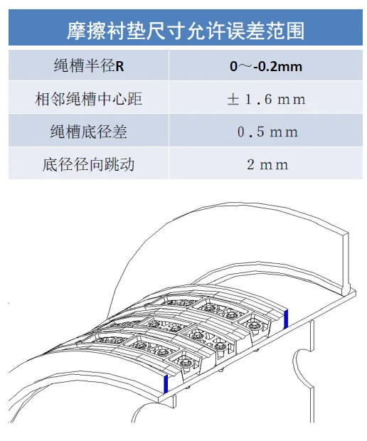 當摩擦襯墊超出上述偏差要求,應進行修正和車削繩槽。