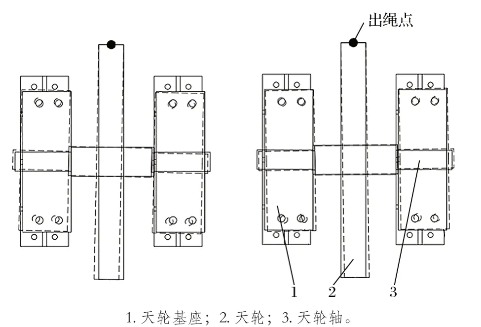 圖2 1 號(hào)天輪鋼絲繩內(nèi)外偏角調(diào)整方案示意