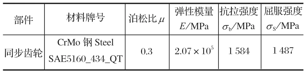表2 同步齒輪材料參數(shù)