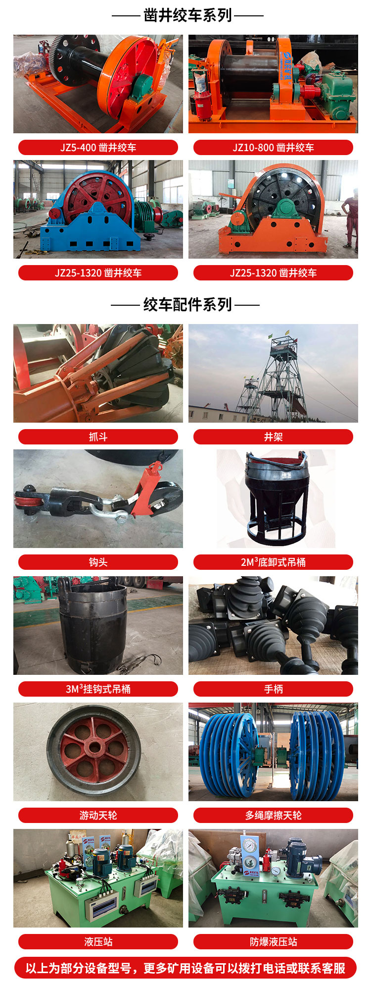 及礦山各種成套設備及配件。